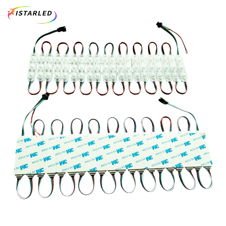 Digital rgb pixels are controlled lights you can program any effects or animate.Each digital pixel with rectangle PVC plastic and contains 3 RGB SMD5050 LEDs and a WS2811 chip soldered to the PCB.The rectangle pixel module is ultrasound surface to waterproof IP65.Those pixel module also have nice mounting options, for examples, each chain with 3M adhesive tape on the backside to help installing,you can put the pixel module into signs, so those pixel modules are typically used to make indoor and outdoor signs.Also each pixel module have a small hole for installation. They also can make large RGB pixel displays and dance stages,KTV floors.