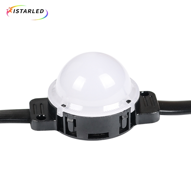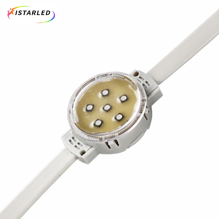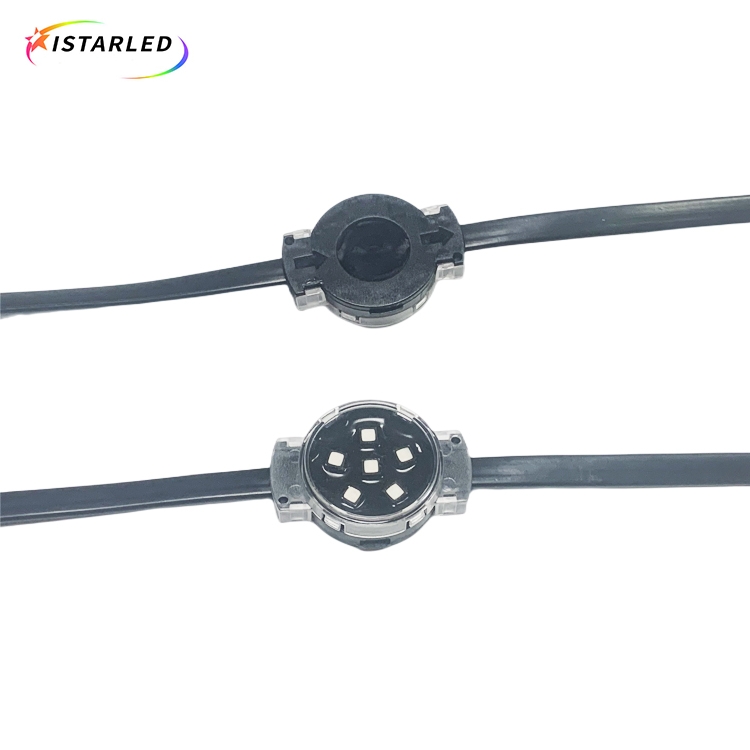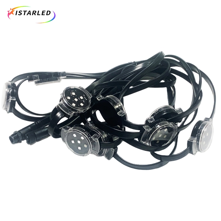 This string pixel led light is diameter 40mm to be 53.4mm,which is easy for you to intall them, each chain made by 20pcs with cable length 8cm, if you need other length and chain please tell before order. Each pixel chain is connected by 3/4/5Pin color cables,6pcs smd5050/3535 rgb led lamp and one ws2811/ucs1903/UCS512 IC chip. Each chain need T power cables to recharge power every 20pcs.Each pixels is inside full glue,so they are waterproof,you they can be used outside.Each pixels you can choose off-white cover or black cover