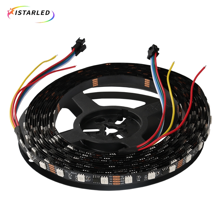 Those WS2818 12V digital pixel strip are with 60pcs smd5050 rgb led lamp per meter, drived by 20pcs WS2818 ic chip,that is,3leds with one ic chip.The digital pixel led strip is with dc12v, 14.4w/m..Those WS2818 digital pixel led strip is with 10mm pcb width,if do silicone tube for waterproof IP65, the width will be 12mm.And we have white and black pcb for you to choose.