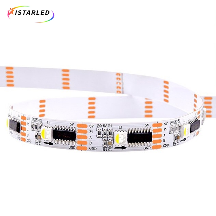 1.This is individually addressable DMX RGBW pixel led strip,which is different from normal SPI digital led strips,Becuase DMX RGBW led strips have parallel signal.