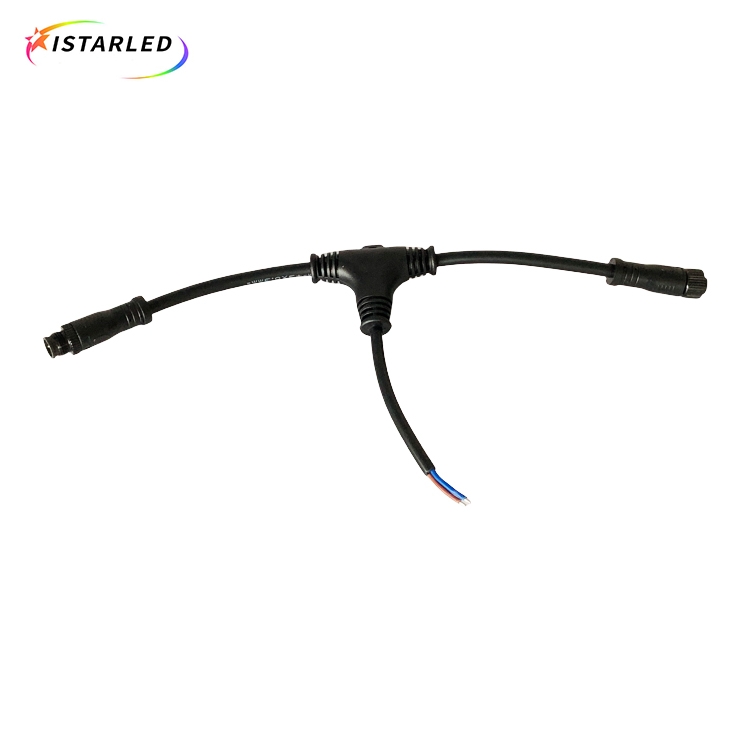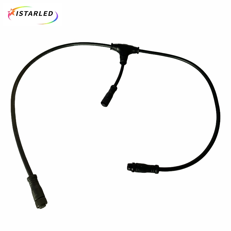 2.To be with 360degree for led meteor tube light, so it is only have input 4/5pin female and male connectors, then use T signal connectors to transfer signal to next one.Also the T signal connector have a hole on the top,so you also can hang up the meteor tube light. For the waterproof connectors we use 5Pin M12 male connectors as input.