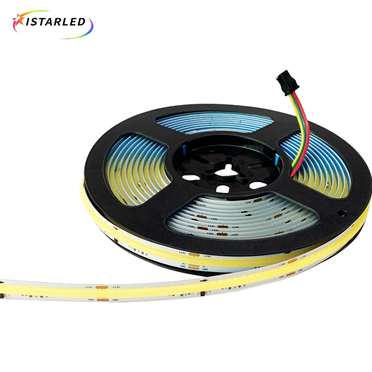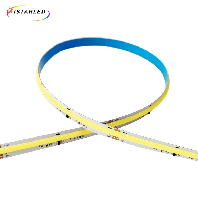 3. COB 576led strips is with ws2811/16703 chip, change 3 channels with only 2 channels we call them CCT pixel led strip,COB dual white pixel led strip,which you can single color chasing,programmable and dimmable.