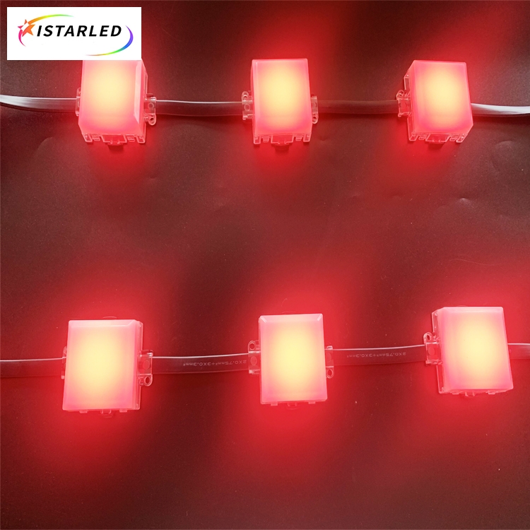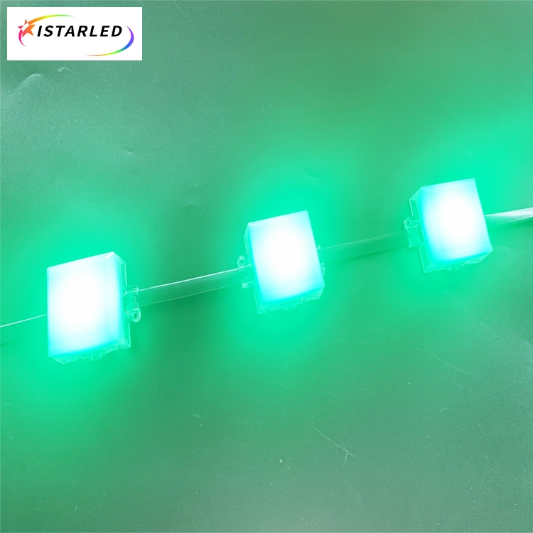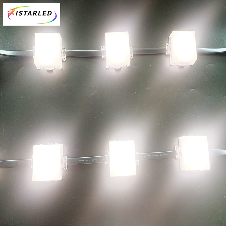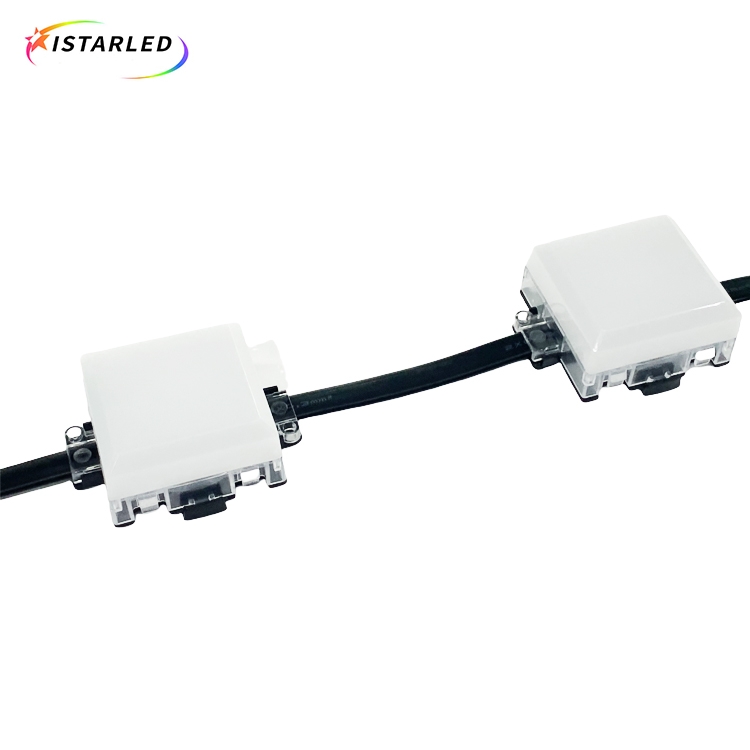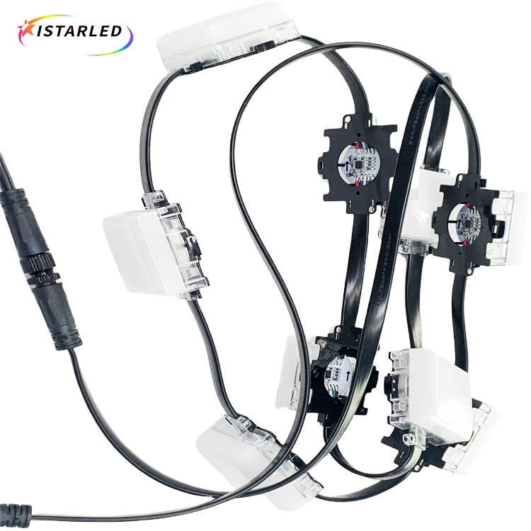 2.DMX rgbw pixel led module normal is with pitch distance 15cm, 20pcs/string, use flat waterproof cables. Each string with M12 flat waterproof connectors . Pixel led modules have glue on the backside and protect Milky cover on the surface, so waterproof outdoor use.
