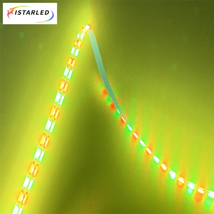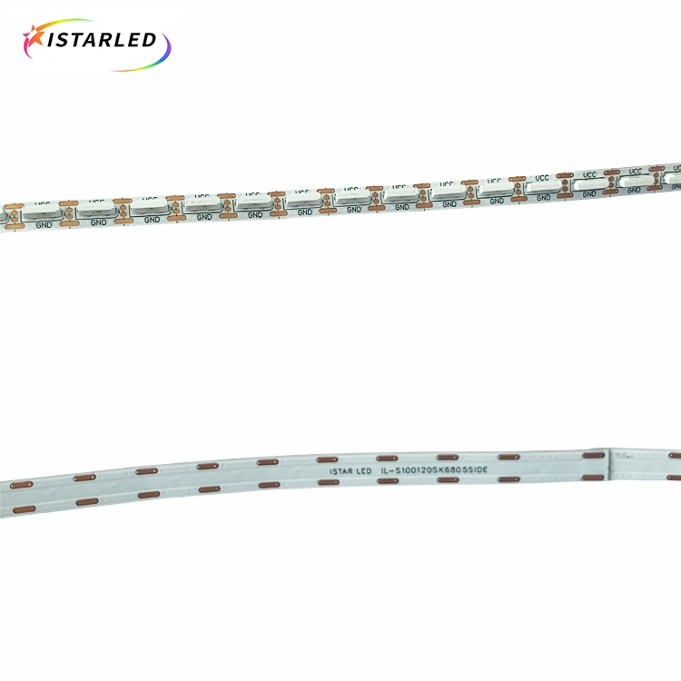 After side emitting addressable rgb led strips, what is better than them ? It is sk6805 double side emitting LED! Sk6805 5720 side emitting achieve addressable with light emitting on both sides.They're also very skinny so you can run them along double edge and curve them around shapes and corners. These look awesome for accent lighting, back lighting, edge lighting...