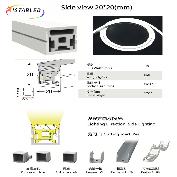 5.The side view 20x20mm neon strip is normaly made by 5m length. Also we can do customer length,if needs,please contact us before orders.