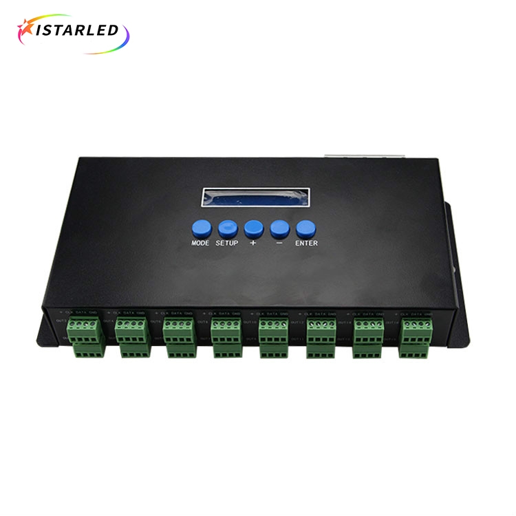 The Ethernet-SPI/DMX pixel light controller is dedicated to converting the Ethernet signal into SPI pixel signal, which is designed for large project with high-density pixel light, such as matrix panel lights, construction's contour lamp, etc. Besides converting Ethernet-based control protocols into various LED driving IC signal, it also outputs DMX512 signal at the same time, convenient for the connection of different types of led lamp, and to achieve the unified control of all kinds of led lamp in the same project.