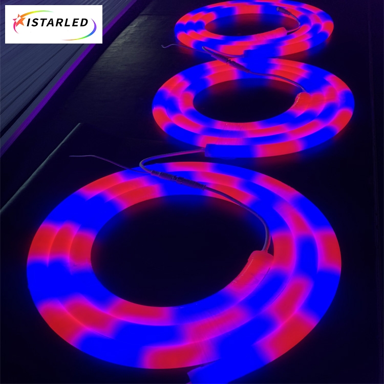 1. Dimeter 25mm neon pixel led strips is 360degree veiw angle,inside with 2pcs 84leds smd5050 rgb pixel led strip, 14pcs ws2811/ucs1903/sm16703 SPI IC chip per meter. Drived by dc24v, 40w/m.